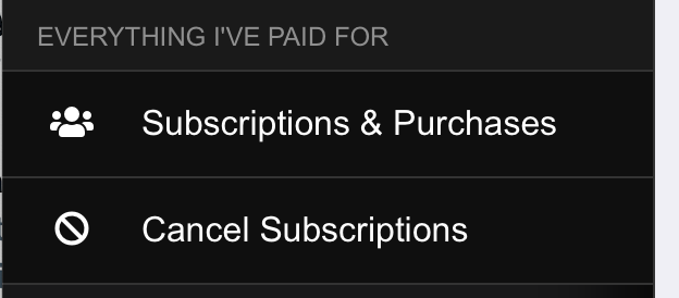 To locate any purchases, start by selecting Subscriptions & Purchases on the left panel: